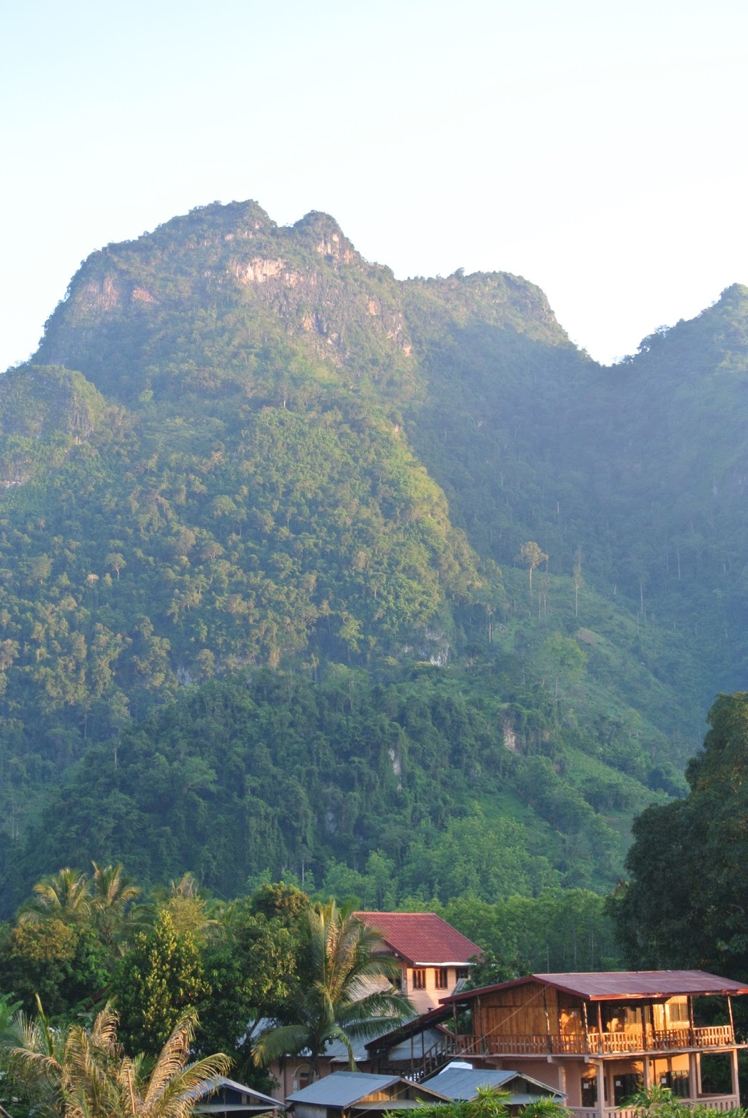 The cycle back to Nong Khiaw is much better later in the day with the sun down and my hair damp and cool from the water. I am starving and have a huge meal of chana masala, dahl fry, aloo gobi and garlic naan at the local Indian restaurant before me returning my bike. Lao and Thai food is good, but I miss Indian food (I never thought I would say that!).